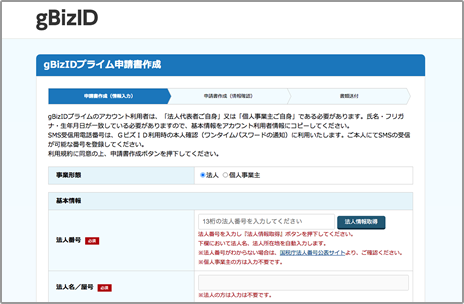 ※GビズIDプライムアカウントは、法人代表者もしくは個人事業主以外は作成ができないため、ご注意ください。